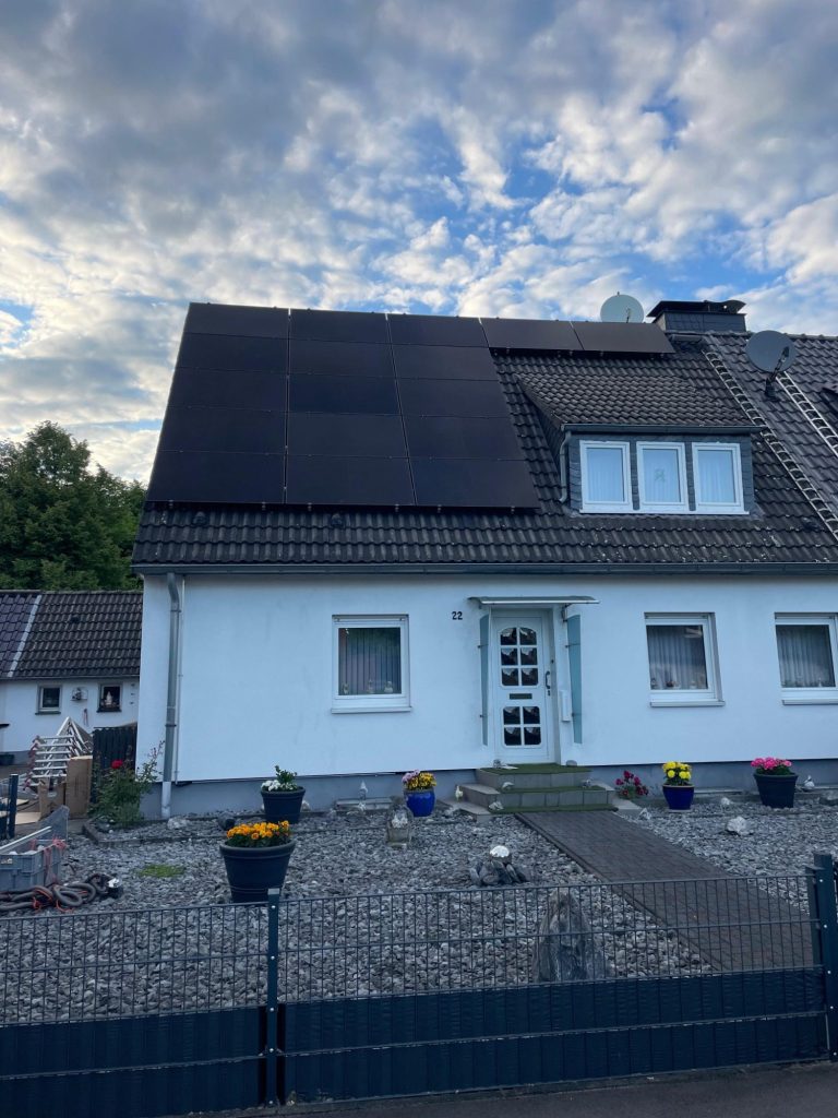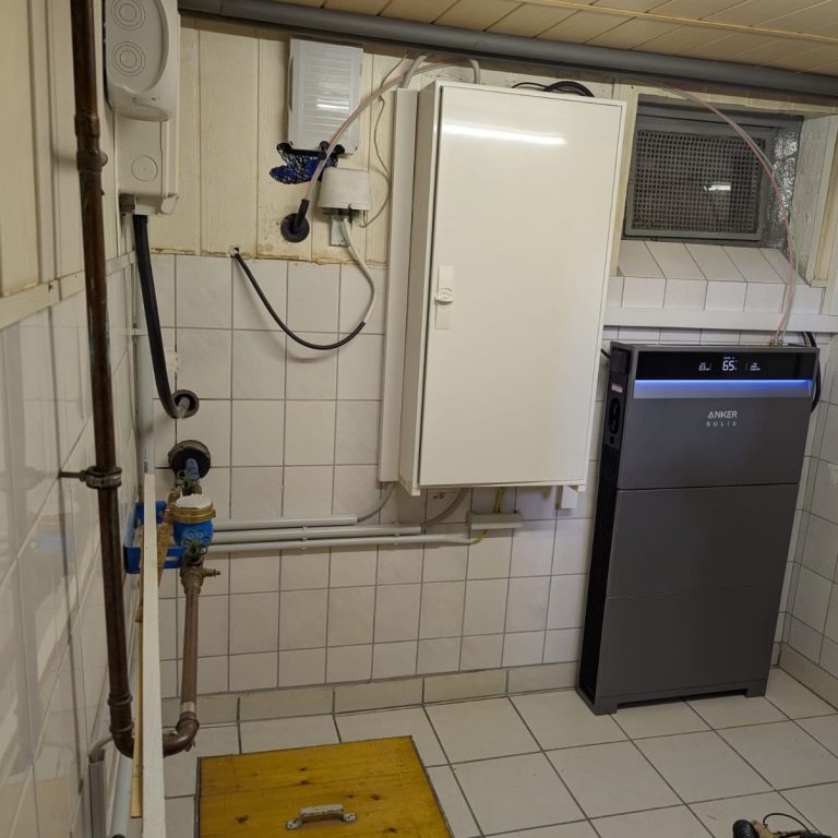 17 x 455W Aiko Module insgesamt 8kWp sind auf dem Dach montiert. Diese mal haben wir die Module quer montiert, dadurch konnten wir mehr Module auf dem Dach unterbringen. Im Keller haben wir einen 8kw Anker Wechselrichter und 10kwh Speicher montiert. Der Kunde hat einen neuen Zählerschrank bekommen, damit wir den Bestand nicht anfassen müssen.